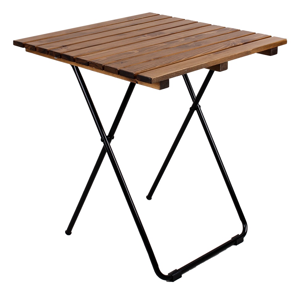 Skládací zahradní stolek s pevným kovovým rámem a dřevěnou deskou, ideální pro zahrady, terasy, altány, balkóny, ale také do interiéru restaurací a kaváren.