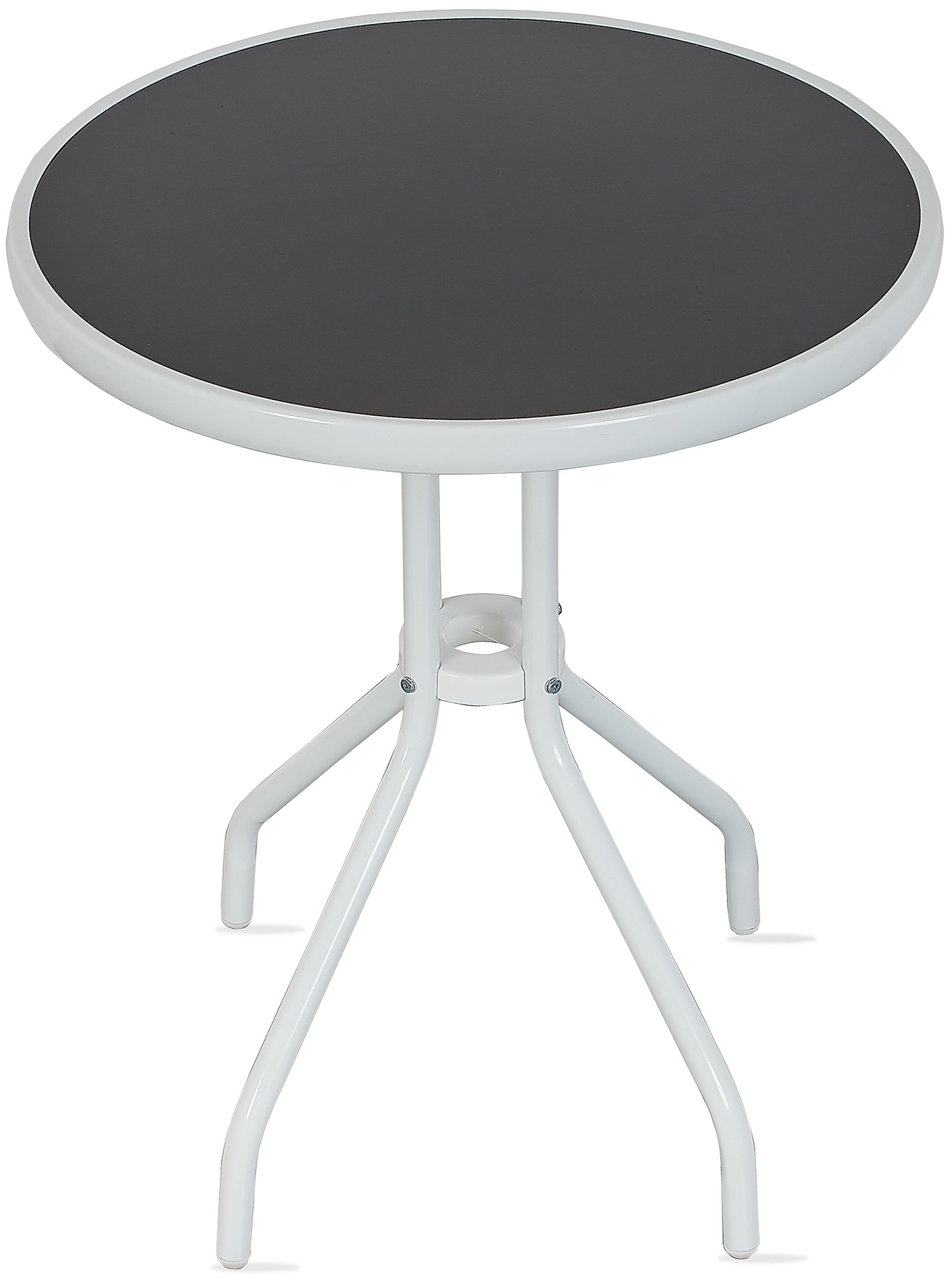 Zahradní stůl s pevným kovovým rámem a skleněnou deskou v moderním designu, vhodný pro zahrady, terasy, kavárny, altánky, balkóny či pláže.