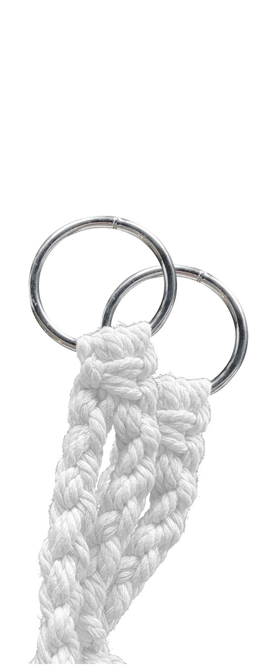 Sedací část je připevněna stabilními kovovými kroužky, díky čemu lze křeslo zavěsit téměř kdekoliv. Sedací díl je vyroben z pevného pleteného lana.