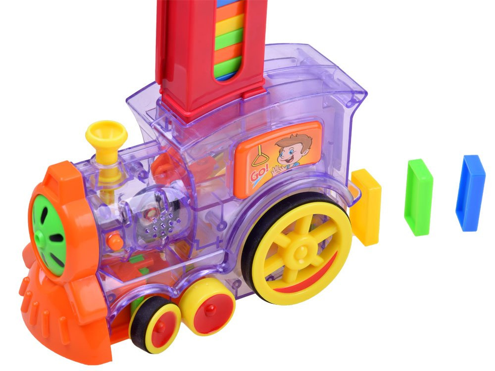 Intenzivní barvy a zajímavý mechanismus, který je vidět v průhledném vlaku, upoutají pozornost každého dítěte. Hra domina na sebe rozhodně rychle neomrzí.