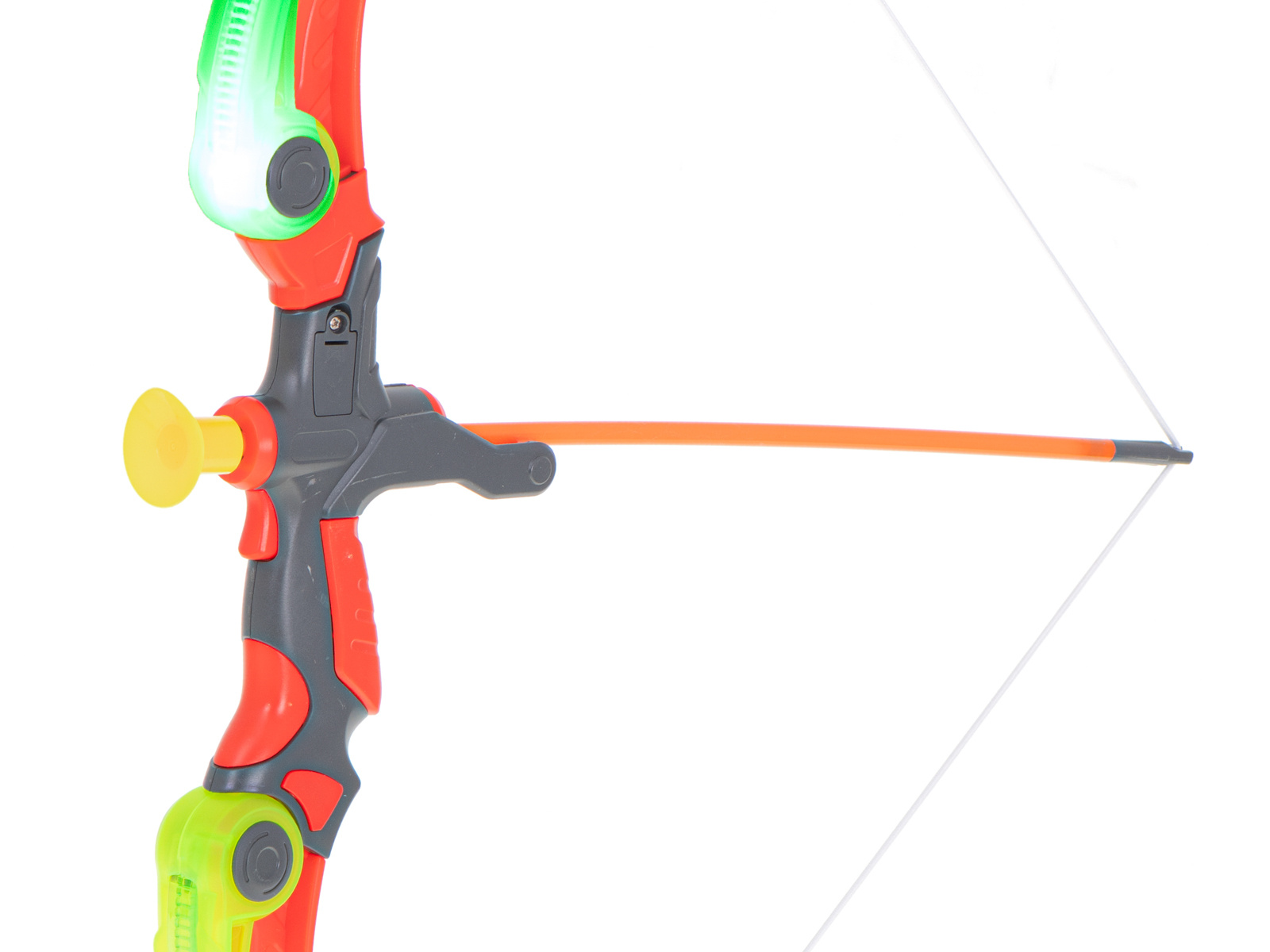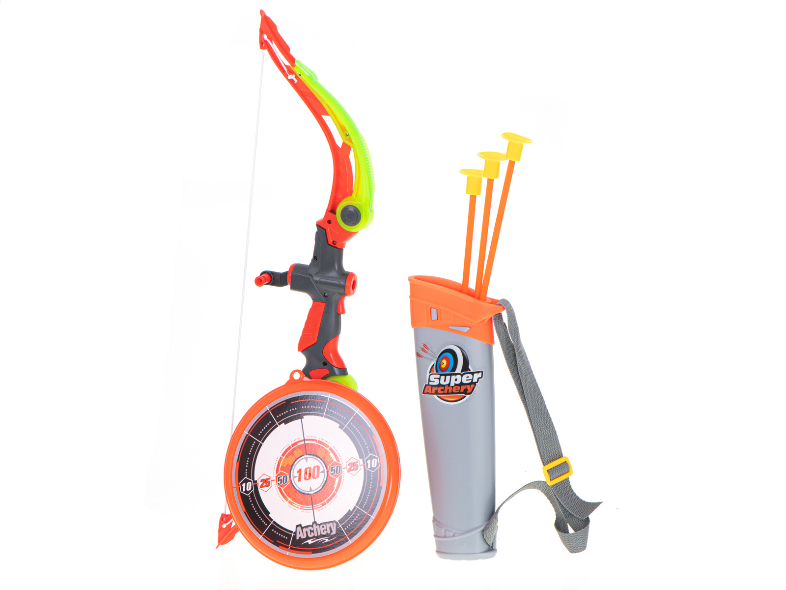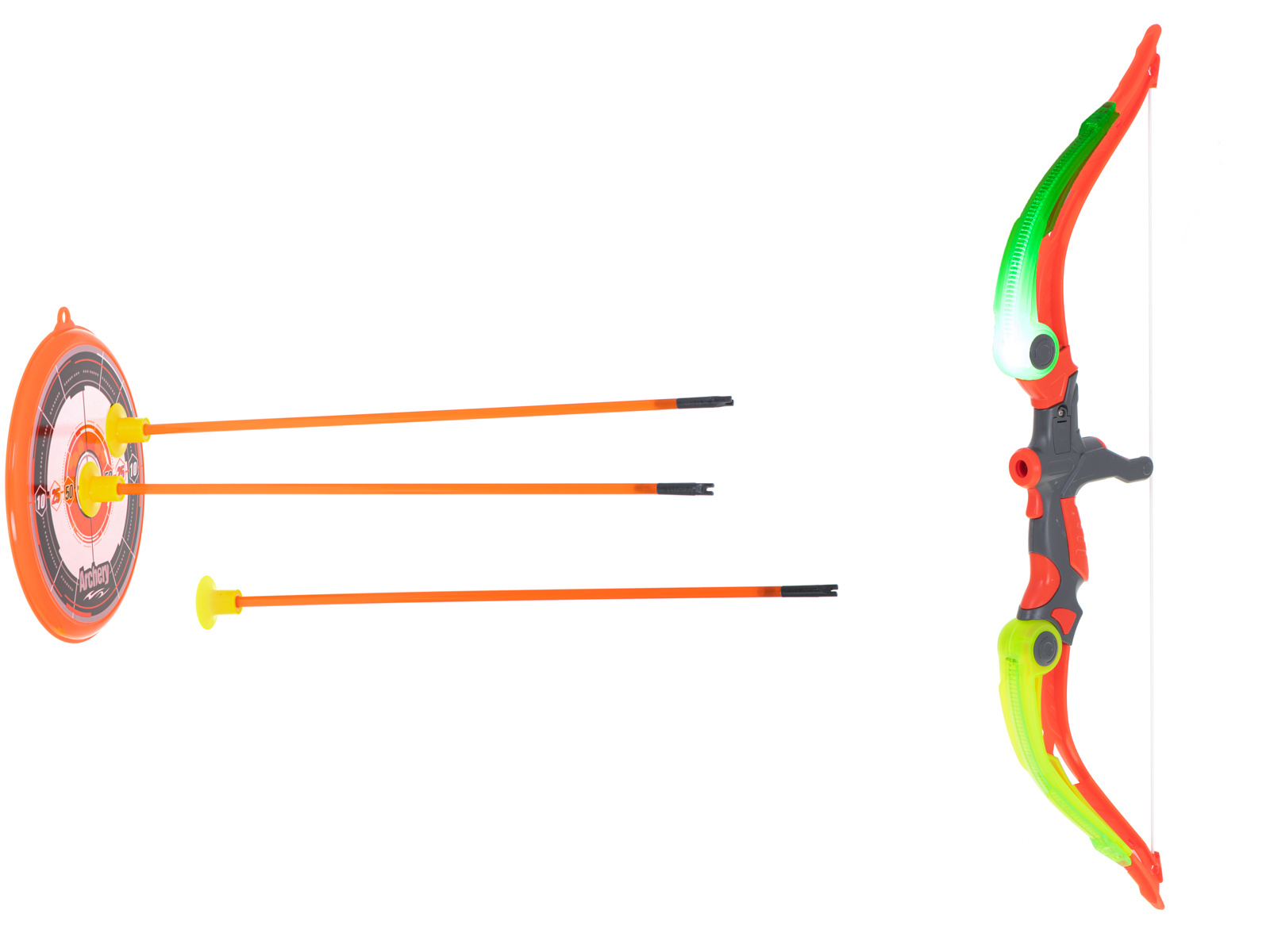 Střelecká sada - luk se šípy a terč. Ideální pro malé bojovníky. Hra procvičuje reflexy a přesnost. Obsahuje: terč, luk, toulec se šípy, 3 šípy s přísavkami. Napájení: 3x AG13 (součástí dodávky). St. kotouč: 20 cm. Dlouhá. luk: 53 cm.Celý popis