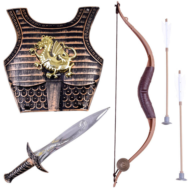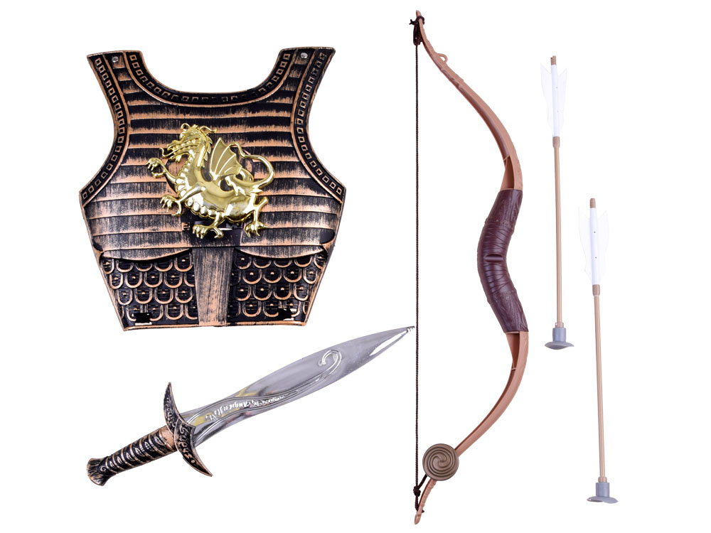 Brnění s mečem, lukem a šípy je sada pro mladého rytíře, která se skvěle hodí na hraní i na maškarní ples. Téměř každý chlapec si rád hraje na rytíře, bojovníky, vojáky atd. Mám možnost vám nabídnout úžasnou sadu pro malého lukostřelce. Realistická sada potěší nejednoho rytíře a je ideální pro hru i maškarní ples.