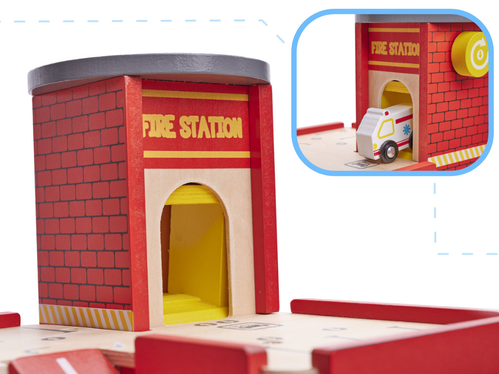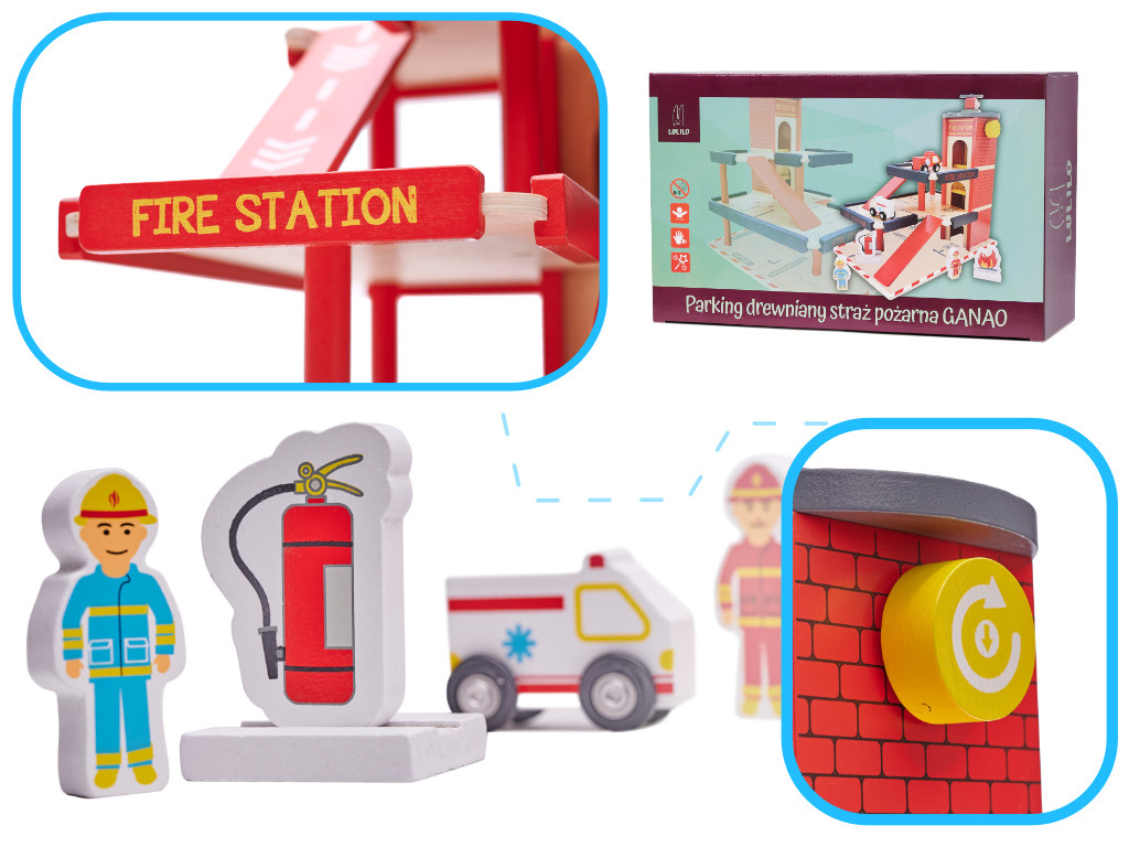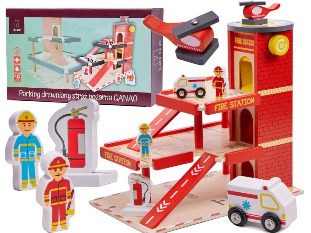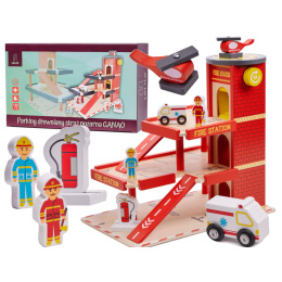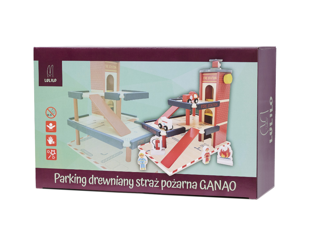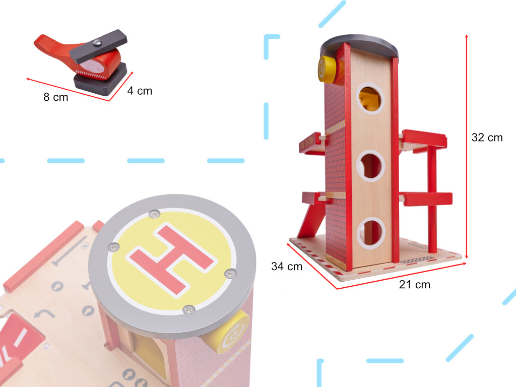 Super parkoviště s hromadami aut. Potěší malého fanouška hasičského sboru. Skládá se ze 4 úrovní, které poskytují nekonečnou zábavu. Hračka podněcuje představivost a rozvíjí manuální dovednosti dítěte. Materiál: dřevo. Rozměry. garáž: 34x21x32cm.Celý popis