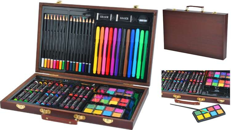 Sada pro malování a kreslení je to skvělá věc pro zahájení uměleckého dobrodružství. Sada je funkční a skládá se z 81 užitečný díly . Velké množství prvků umožňuje praktické využití a umožní realizovat nejrůznější kreativní nápady. Obsahuje 24 olejových pastelů, 16 tužek, 24 akvarelových barev, 12 fixů, 2 štětce, ořezávátka a 2 guma ek můžeme snadno vytvářet efektní a originální díla. Nádobí je vyrobeno z kvalitních materiálů a má širokou atraktivní škálu barev.
