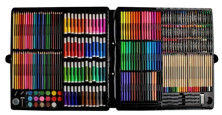 • 288 POLOŽEK - S pomocí obrovského výběru 72 pastelek, 96 fixů, 60 olejových pastelů, 18 akvarelových barev, 3 tužek, 3 štětců s nádobkou na vodu, 30 kancelářských sponek, ořezávátek a 2 gum, snadno vytvoříme ty nejnáročnější, nejkreativnější a originální díla.