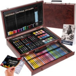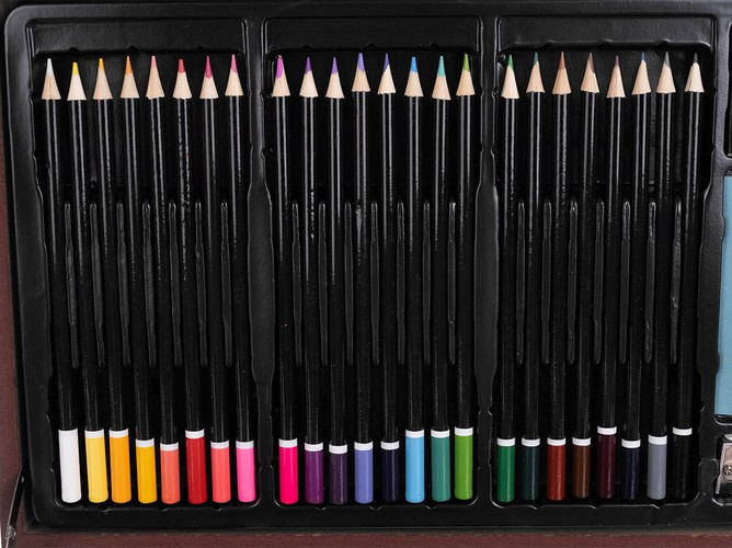 Výtvarná sada na malování je obrovský výběr mnoha prvků, díky kterým dítě vytvoří mimořádně kreativní, nápadité a originální výtvarná díla. Výtvarná sada pro děti obsahuje mnoho prvků, včetně: 60 voskovek, 24 pastelů, 24 pastelek, 24 vodových barev, také 2 štětce, ořezávátko, 2 kusy brusného papíru, gumu, dvě tužky HB a 2B. S pomocí tak obrovského výběru prvků bude dítě rozvíjet svou fantazii a jistě vytvoří kreativní díla.