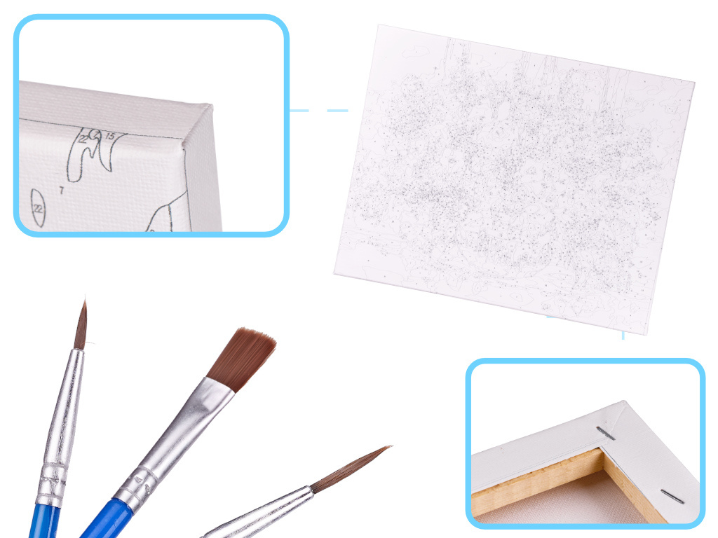 Plátno s obrazem k namalování na dřevěném rámu
