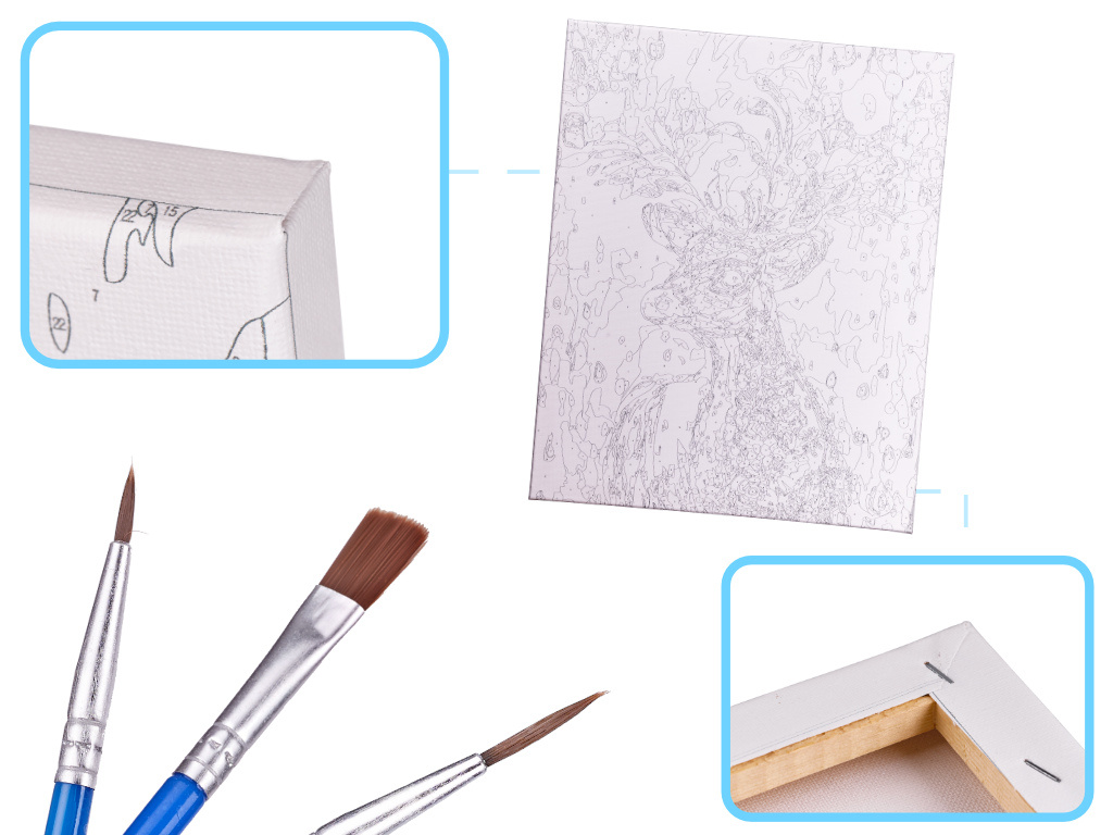 Na obrázku jsou očíslovaná pole. Sada se dodává s barvami, které jsou rovněž číslované. Tak budete vědět, jakou barvu použít v které oblasti. Když všechna políčka vyplníte podle značek barvami, vznikne skutečně nádherné umělecké dílo, které může zdobit stěny vašeho obývacího pokoje nebo ložnice.