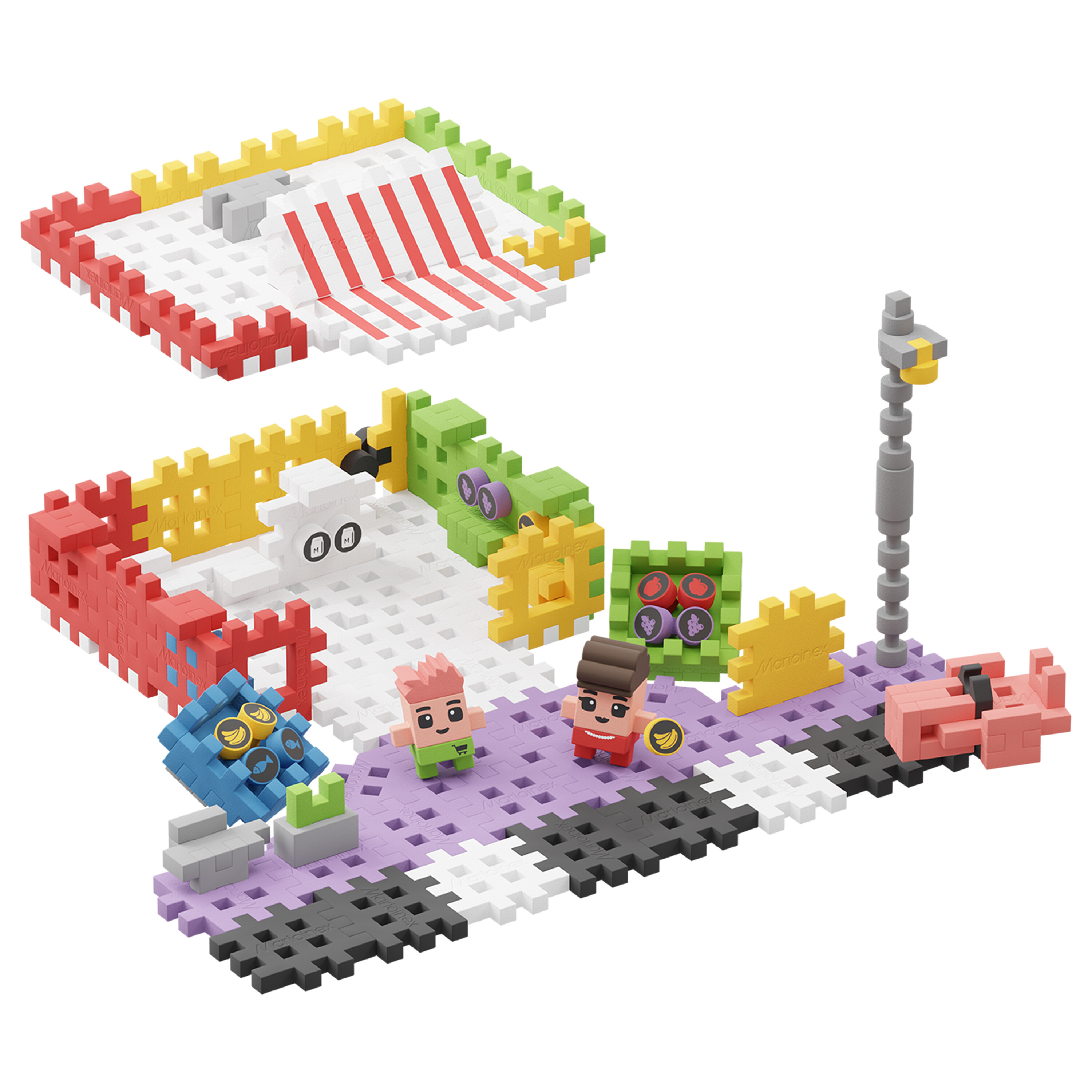 Stavebnice Marioinex je navržená tak, aby byly co nejbezpečnější a nejvhodnější pro děti. Jsou vyrobeny z pružného, měkkého a na dotek příjemného materiálu. Jejich tvar byl dokonale přizpůsoben tvaru a velikosti dětských ručiček.