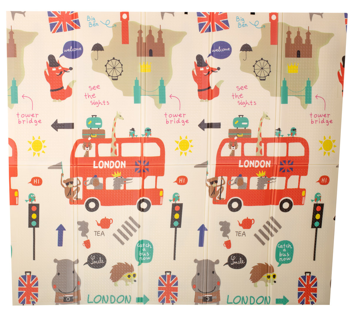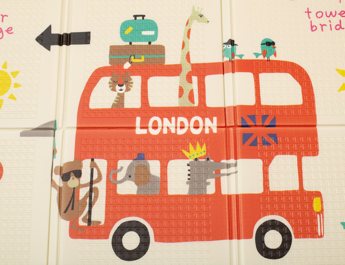 Měkká, velká, skládací, protiskluzová pěnová podložka. Lze jej použít jako hrací koberec. Na každé straně je jiný potisk. K dispozici v krémové barvě s potiskem sovy a dalších zvířat. Vyrobeno z voděodolné pěny. Rozměry: 200 x 180 cmCelý popis