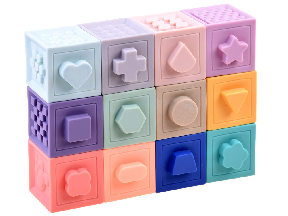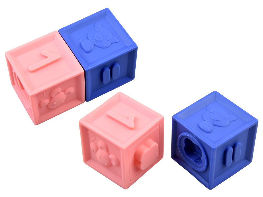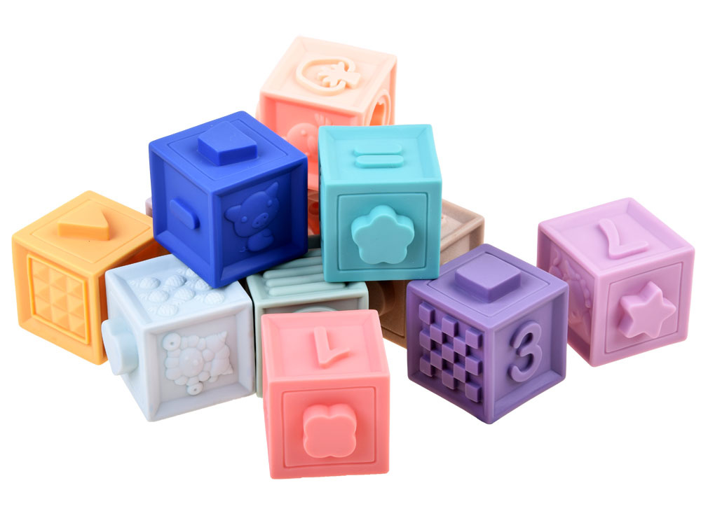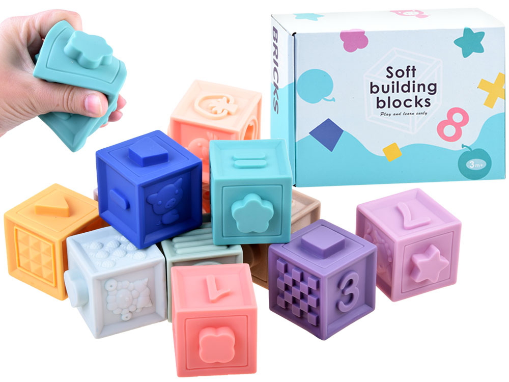 Měkké gumové kostky byly vyrobeny s ohledem na nejmladší uživatele. Jsou vyrobeny z měkkého gumového materiálu pro pohodlnou a bezpečnou hru. Kostky mají vypouklé tvary, takže je batole snadno poskládá k sobě. Každý blok obsahuje různé tvary, zvířata a učební čísla pro starší děti. Díky své struktuře se dobře hodí jako žvýkací pamlsek. Zajímavá grafika a jemné, ale přesto odlišné barvy povzbudí každé batole k tvořivé hře. Kostky jsou pro dítě 100% bezpečné, dítě se s nimi neudeří, pád nebo šlápnutí na ně během hry nezpůsobí žádnou bolest. Netoxický, měkký materiál se snadno čistí a snadno se udržuje. Jsou skvělé pro zábavu pod vodou ve vaně nebo v bazénu. Bloky jsou vzdělávací hračkou, která pomáhá poznávat nové tvary, barvy a rozvíjet manuální dovednosti. Díky tomu, že jsou vyrobeny z měkkého materiálu, jsou zcela bezpečné pro děti od 3 měsíců věku.
