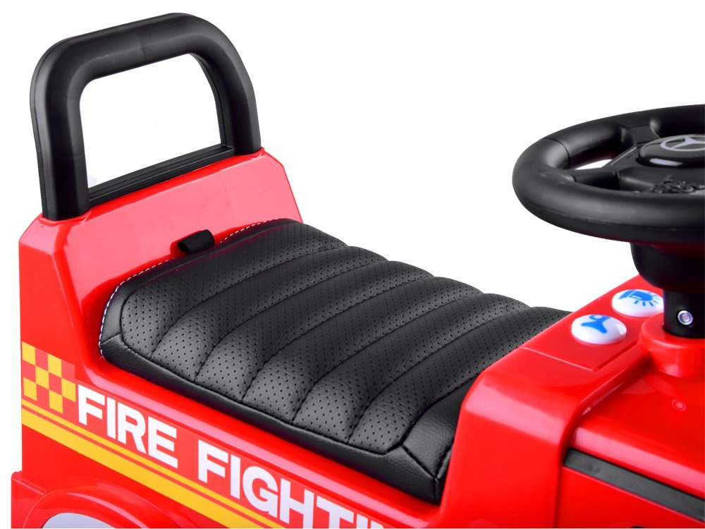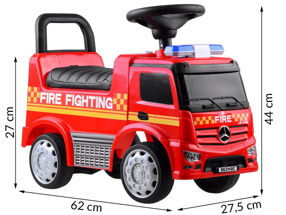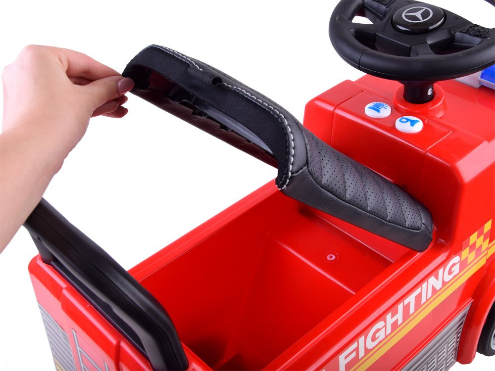 Senzační licencované autíčko Mercedes je ideální jako první vozidlo pro vaše batole. Jak se na skutečné hasičské auto sluší a patří, je vybaveno světelnou a zvukovou signalizací. Auto je vyrobeno výhradně z vysoce kvalitního plastu v intenzivních barvách. Nastupování a vystupování nebude pro vaše dítě obtížné a pohodlné sedadlo s opěradlem zajistí pohodlnou a bezpečnou jízdu. Speciální blokovací zařízení zabrání tomu, aby se vozidlo během jízdy otáčelo dozadu.
