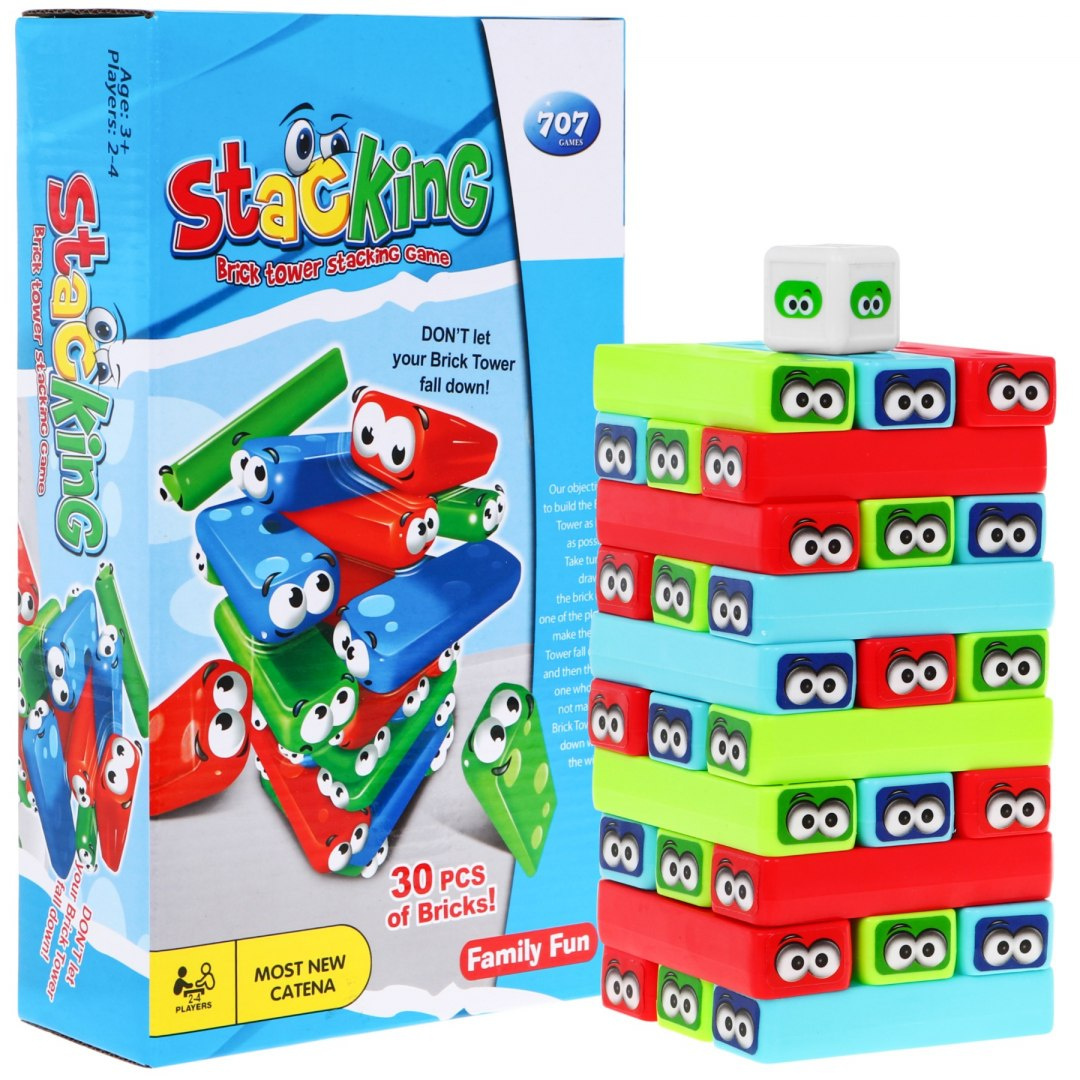 Zábavná a vzrušující rodinná logická hra Jenga je vhodná pro děti od 3 let. Hra je určena pro 2-4 hráče. Cílem hry je nenechat věž z kvádrů spadnout na zem. Hra s Jengou stimuluje kreativitu, představivost batolete, učí trpělivosti, rozvíjí prostorovou představivost, trénuje soustředění.