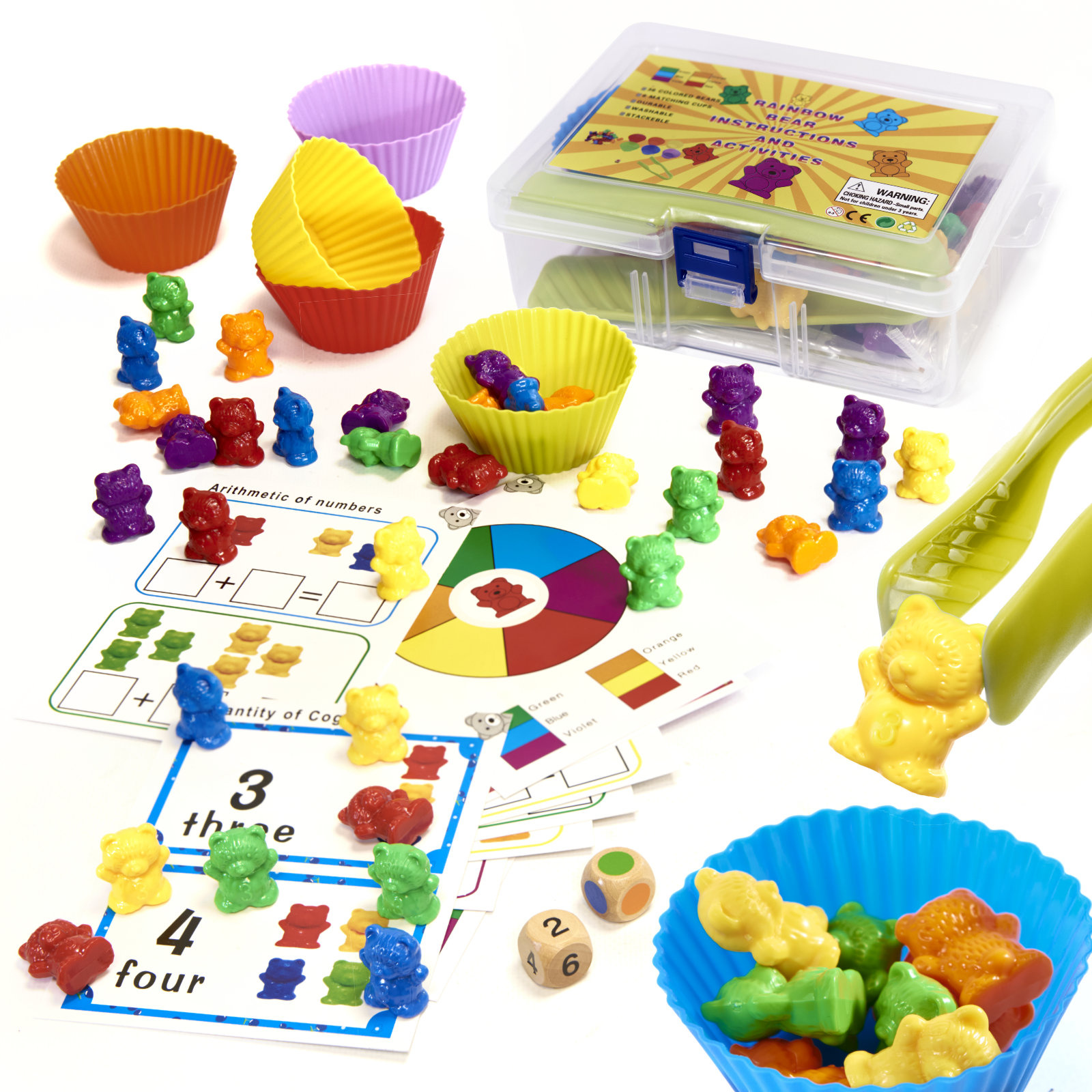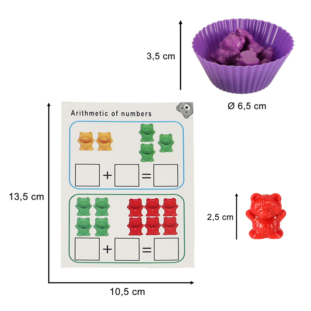 Sada obsahuje 36 sčítacích medvídků v 6 barvách. Sada rozvíjí rozeznávání barev a počtů.