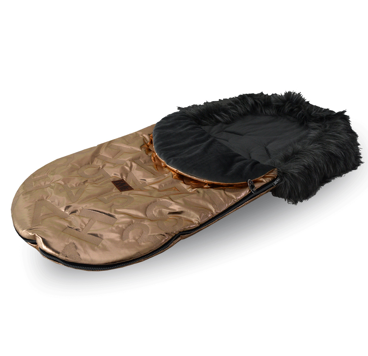 Dětský fusak má rozepínací zip, otvory na 5-bodové bezpečnostní pásy a gumové úchytky umožňující připevnění ke kočárku.