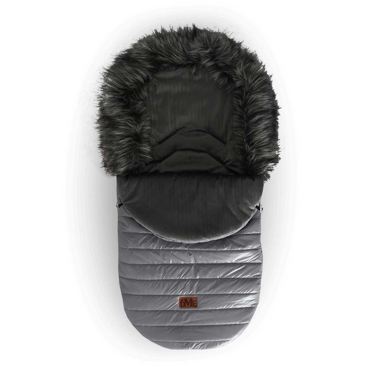 Dětský fusak má rozepínací zip, otvory na 5-bodové bezpečnostní pásy a gumové úchytky umožňující připevnění ke kočárku.