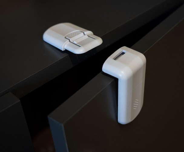 SNADNÁ MONTÁŽ - k sestavení zámku zásuvky není potřeba žádné nářadí. Povrch skříňky/zásuvky stačí očistit a odmastit a následně nalepit ochranu skříněk. Zámek přilepte tak, aby jedna část byla na dvířkách a druhá na stěně skříňky / zásuvky.