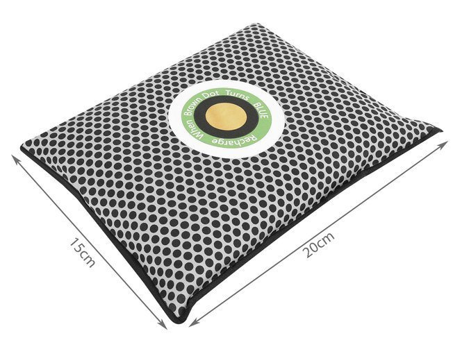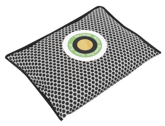 SNADNÉ POUŽITÍ -ve středu odvlhčovače jemodrý indikátor vlhkosti.Pokud anobarvaoranžovýznamená , že je suchý a připravený k použití . Když se barva změní namodrýodstín znamená, že je naplněný vlhkostí a musí být vysušen . Usušit ho můžete například v mikrovlnné troubě, čímž se v něm nashromážděná vlhkost odpaří. Po zaschnutí se barva indikátoru změní na oranžovou, což znamená, že je připraven k použití.