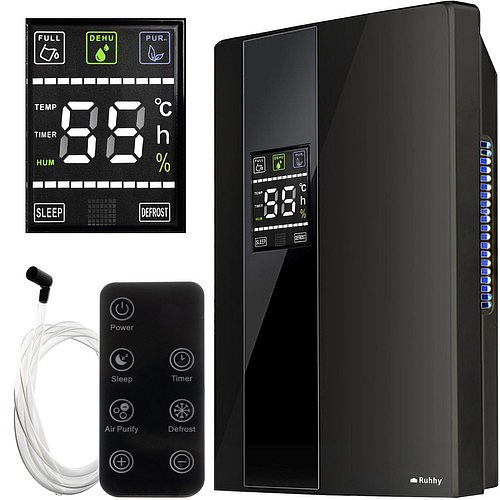 • nádrž odvlhčovače má kapacitu 1800 ml . Díky tomu nemusíte vodu každou chvíli vylévat . Odvlhčovač můžete klidně nechat doma déle než dva dny! Další výhodou zařízení je automatické vypnutí po naplnění nádrže. Sada obsahuje také hadici, kterou můžete připojit k odvlhčovači a odvádět vodu ven, například přímo do dřezu . Toto řešení vám umožní ponechat odvlhčovač na místě, kam přicházíte jen zřídka.
