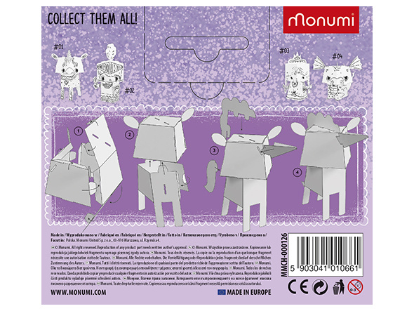 MONUMI je polská značka vytvořená týmem lidí, pro které je práce vášní a dětská radost hlavní odměnou za kreativní tvorbu hraček, které baví a učí. Pečlivý výběr skupiny odborníků, kteří materiály vyvíjejí, a to jak z obsahového, tak z uměleckého hlediska, směřuje k tomu, aby naše výrobky účinně ovlivňovaly duševní rozvoj dětí. MONUMI vytváří jedinečné papírové kreativní sady a omalovánky pro různé skupiny čtenářů s ohledem na jejich estetické a intelektuální potřeby.