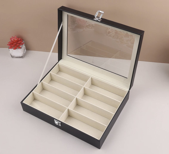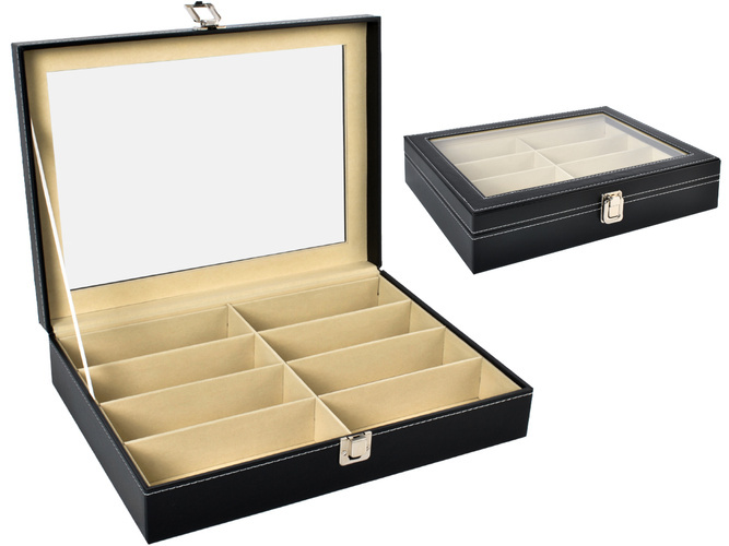 ESTETICKÉ A ELEGANTNÍ -pouzdrovyrobeno s důrazem na detail, vypadá krásně a zobrazuje svůj obsah skvělým způsobem. Výrobek je vyroben z černé eko kůže s bílým prošíváním a světlým, dokonale kontrastním vnitřkem. Víko pouzdra na brýle je průhledné, díky čemuž lze krabičku na brýle využít nejen k uskladnění, ale také k elegantnímu vystavení obsahu.