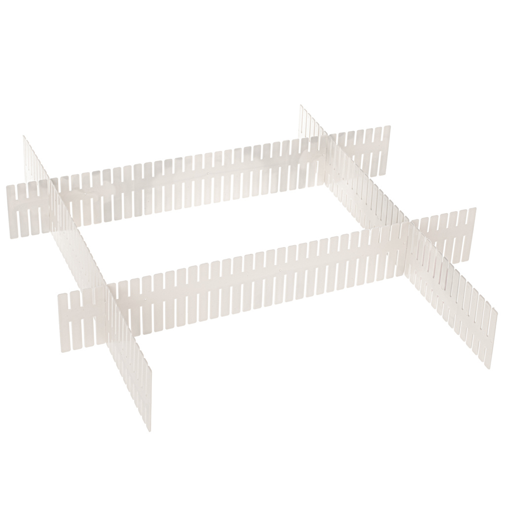 Praktický oddělovač zásuvek. Usnadňuje udržování pořádku a organizuje všechny uložené věci. Snadná montáž bez použití nářadí. Lze je zkrátit na požadovanou délku.