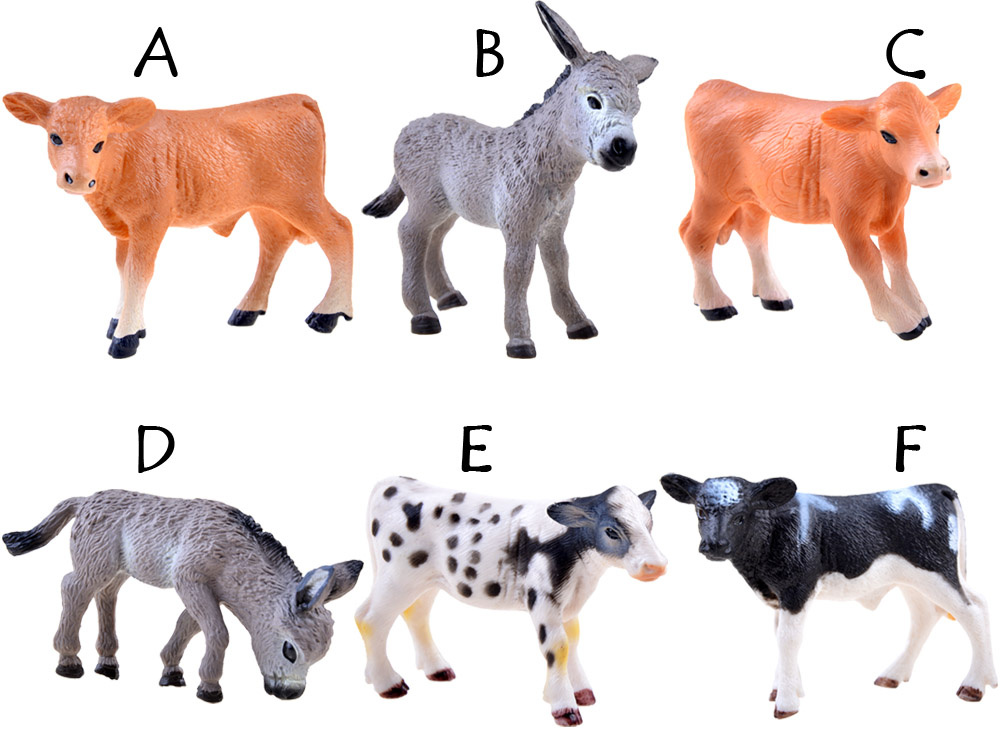 Figurka oslíka nebo telátka je tipem pro každého malého farmáře či chalupáře. Hračka je vyrobena velmi realisticky se zachováním všech detailů zvířete. Figurka je vyrobena z plastu v barvách odpovídajících danému druhu.