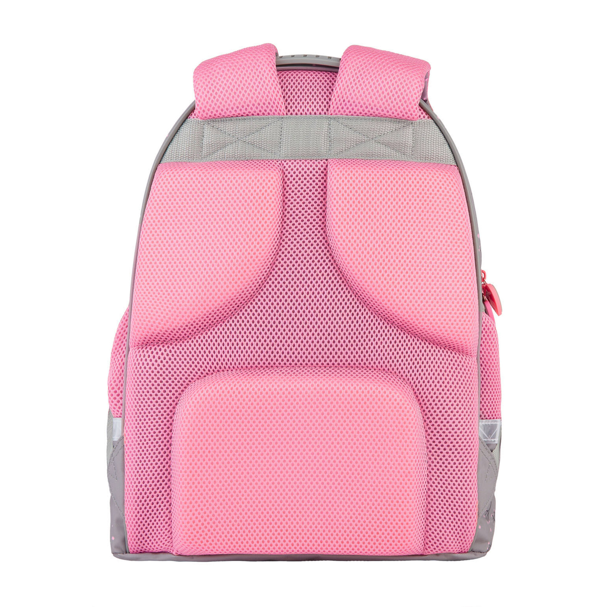 Tento batoh perfektně sedí na zádech, a je proto šetrný k dětské páteři. Díky vyztuženým, profilovaným zádům a měkkým, nastavitelným popruhům je nošení batohu velmi pohodlné. Batoh má vyztužené a polstrované dno.