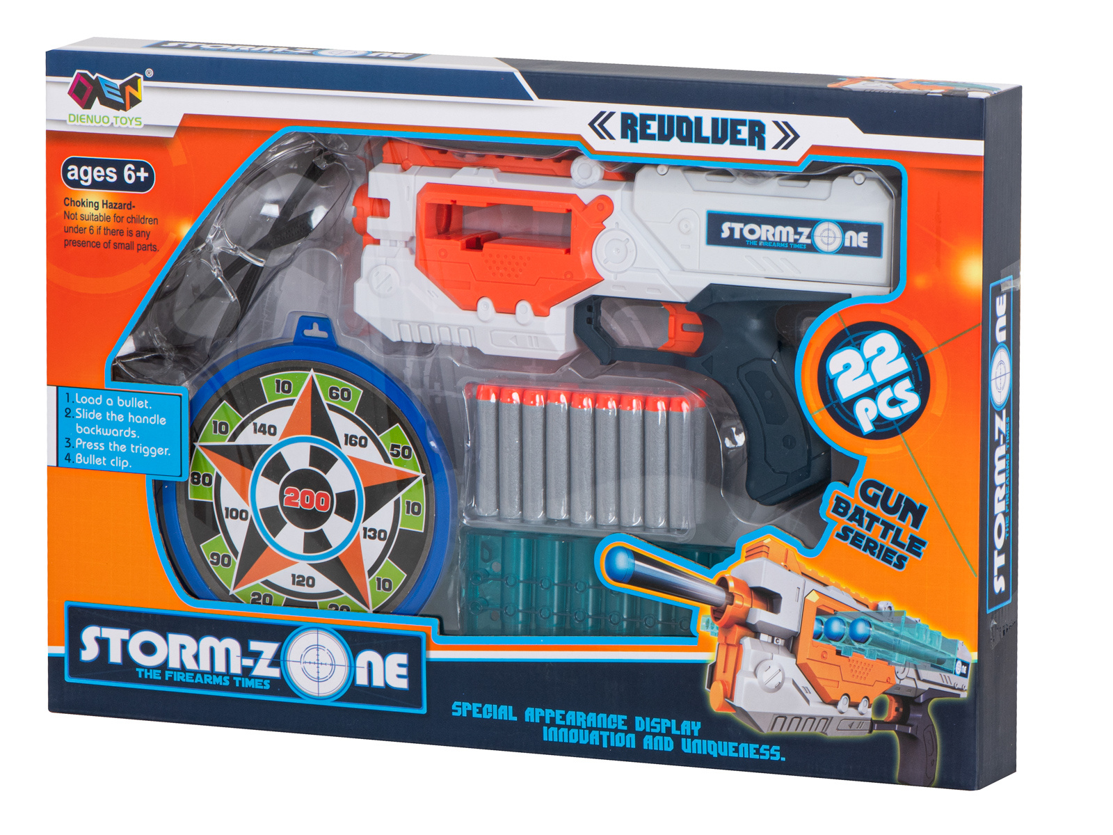 Zářivé barvy připomínají zbraně z oblíbených počítačových her, a proto je hračka atraktivní pro děti všech věkových kategorií.