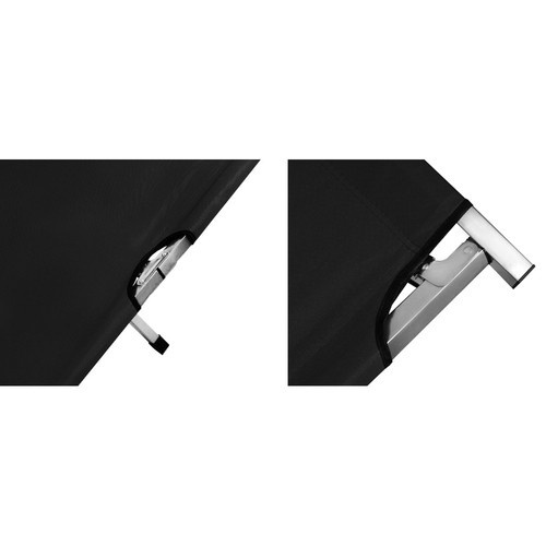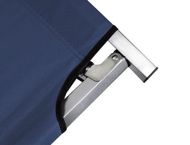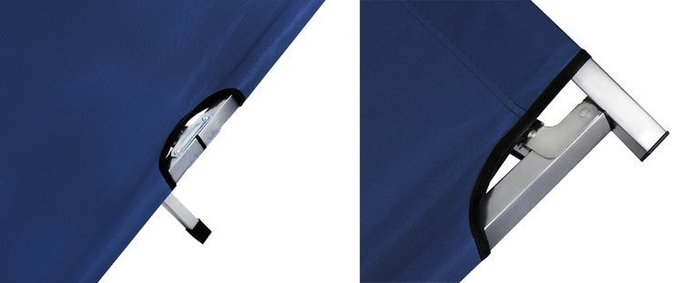 Velmi solidní ocelová konstrukce.Po složení velmi snadná přeprava.Díky zesílenému rámu a západkovému systému je lůžko stabilnější.Lehací plocha je zhotovena z pevné polyesterové látky 600D.
