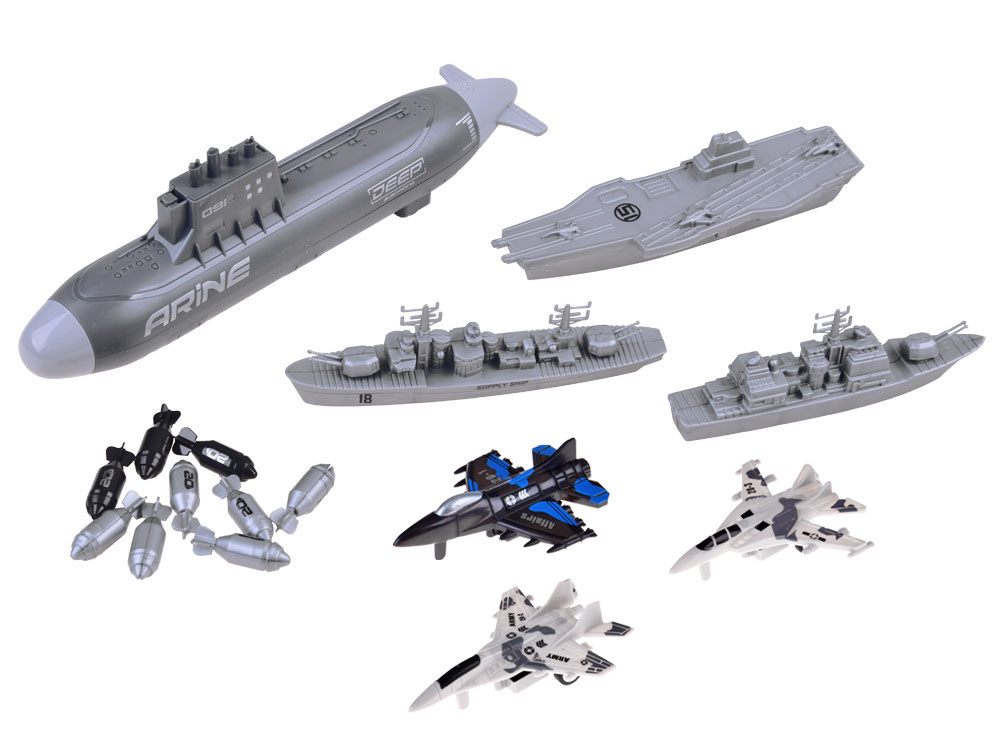 Sada letadel, vojenských lodí a ponorky, kterou malý voják vlastní, je nezbytným vybavením pro operace na bojišti. Malý stratég bude mít k dispozici námořní flotilu a tři stíhací letouny, které budou hlídat oblast ze vzduchu. Sada je celá vyrobena z plastu v příslušných barvách a grafice. Kromě toho má ponorka pohon dvou zadních kol, takže hra může být realističtější.
