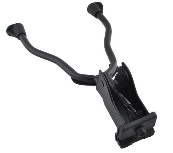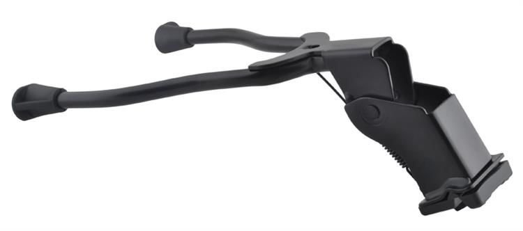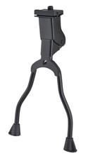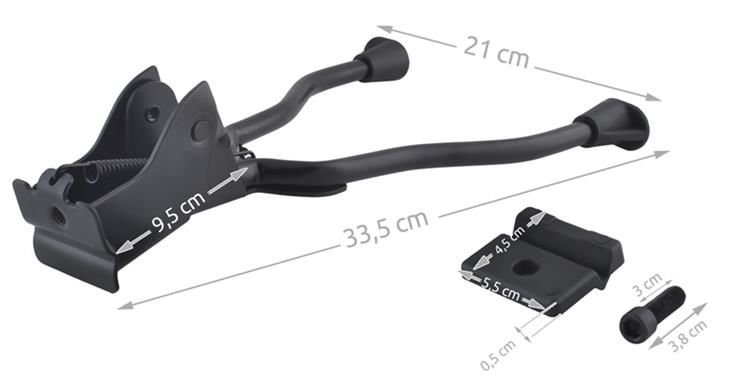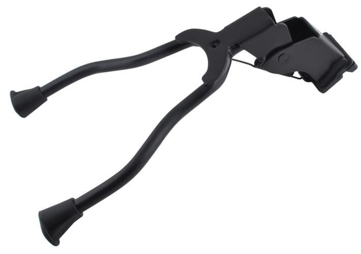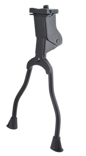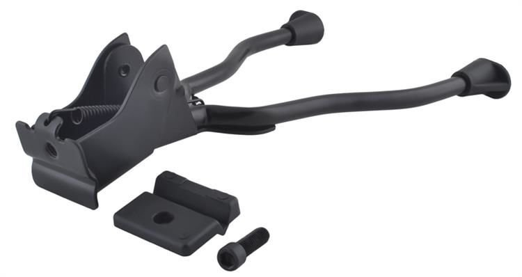 Dvojitá kovová noha kola k připevnění na zadní část kola (mezi zadní kolo). Centrální montáž, pomocí šroubu. Sada obsahuje mezikus, který chrání kolo proti poškrábání při instalaci nohy a zvedá nohu (možnost vyjmutí mezikusu).