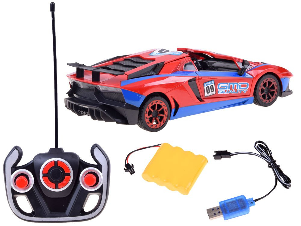Super cool sportovní auto na dálkové ovládání pro malé řidiče rallye. Autíčko se ovládá dálkovým ovladačem a jezdí dopředu, dozadu, doprava a doleva. Pomocí dálkového ovládání může dítě také otevírat dveře a střechu vozidla. Vůz v nápadné červené a modré barvě má sportovní siluetu, pneumatiky s gumovým vzorkem a světelné efekty aktivované během jízdy. Celé vozidlo je vyrobeno z robustního plastu. Celá věc se ovládá dálkovým ovladačem s gumovou anténou.