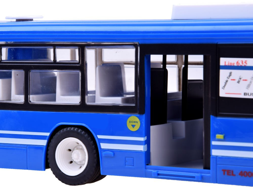 Hračka se ovládá dálkovým ovladačem 2,4 GHz. Dálkové ovládání zajišťuje plnou kontrolu nad autobusem, veškerá práce malého řidiče a autobusu bude probíhat bez námahy a pod plnou kontrolou. Dálkové ovládání umožňuje jízdu vpřed, vzad, otáčení vlevo a vpravo. Autobus, jak se na skutečné vozidlo tohoto typu sluší, musí mít automaticky otevírané dveře, , které ovládá řidič. U tohoto modelu se dveře otevírají speciálním tlačítkem na dálkovém ovladači! Senzační přední osvětlení LED je senzační v tmavší místnosti. Vozidlo je vybaveno 3cm koly. Autobus je napájen z připojené baterie, což výrazně snižuje provozní náklady.
