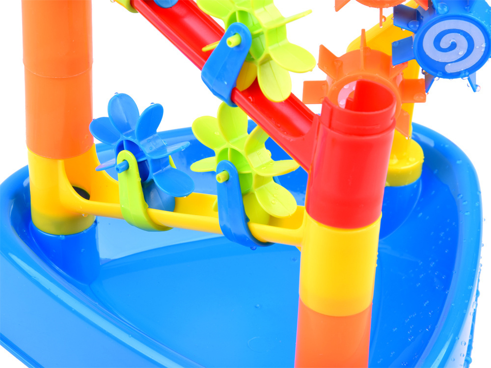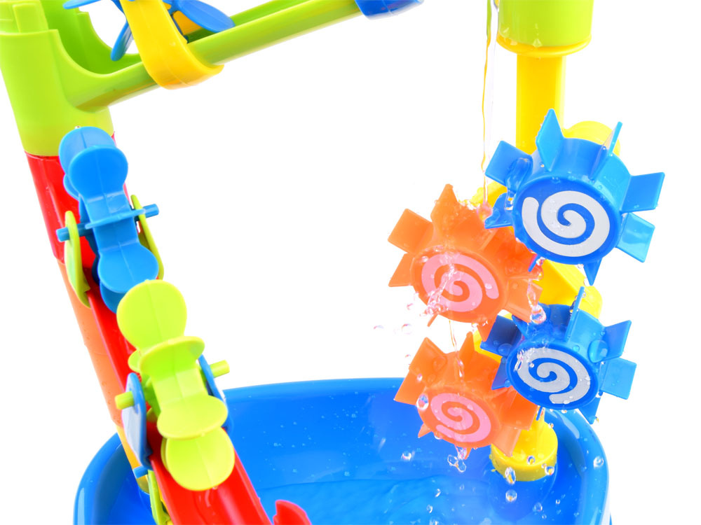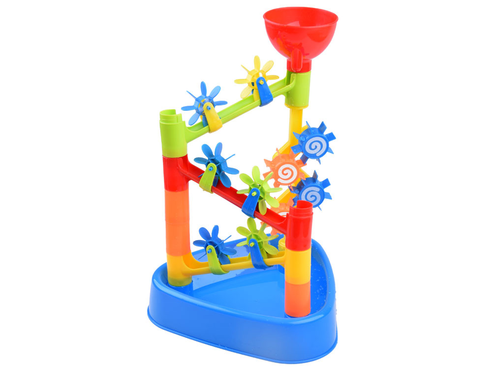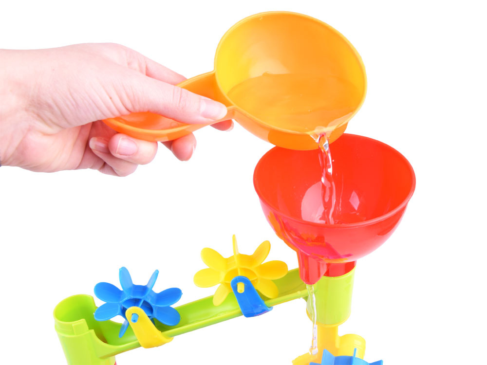 Dítě má možnost nalít vodu a sledovat, jak se válce vesele točí kolem své osy.