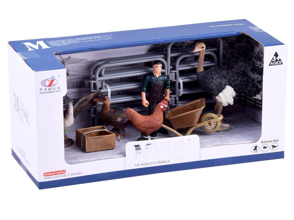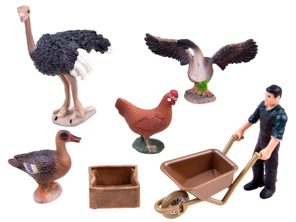 Sada obsahuje pštrosa a slepici, husu a kachnu. Stejně jako na skutečné farmě na vše dohlíží postava farmáře.