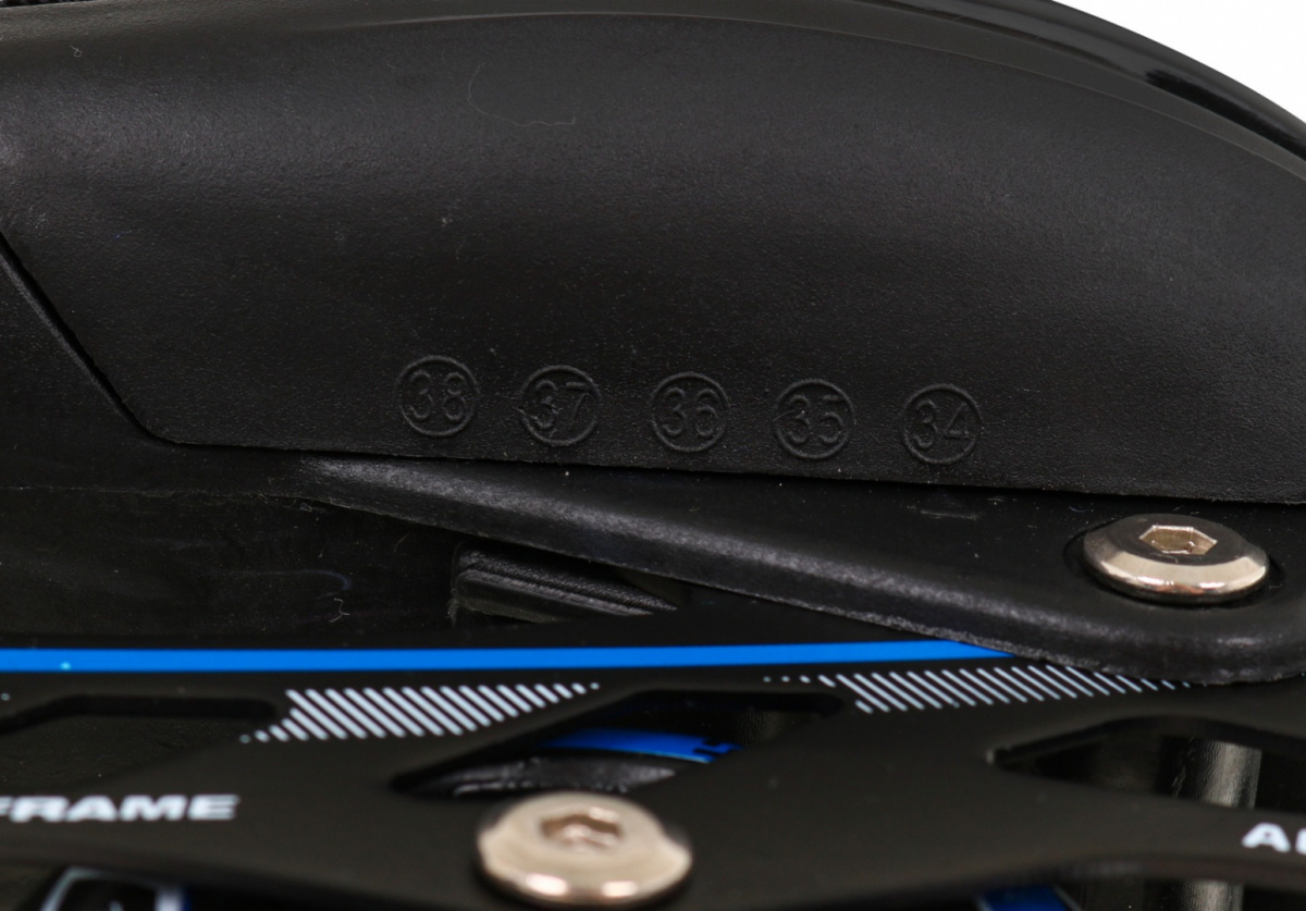 | Boty | - pětistupňový systém nastavení velikosti pomocí tlačítka (34-38) - vnitřní délka boty od 20,5 cm do 23,5 cm, - polotvrdá konstrukce pro flexibilitu boty a bezpečnost kotníku - třísekvenční zapínání: - šněrování - pásek na suchý zip - přezka (nastavitelná + pojistka proti otevření) - brzda na pravém kolečku - ventilační systém - polopropustná membrána - tvarovaná stélka - stélka s měkkou pěnou EVA, potažená vnější vrstvou ze sametové tkaniny |