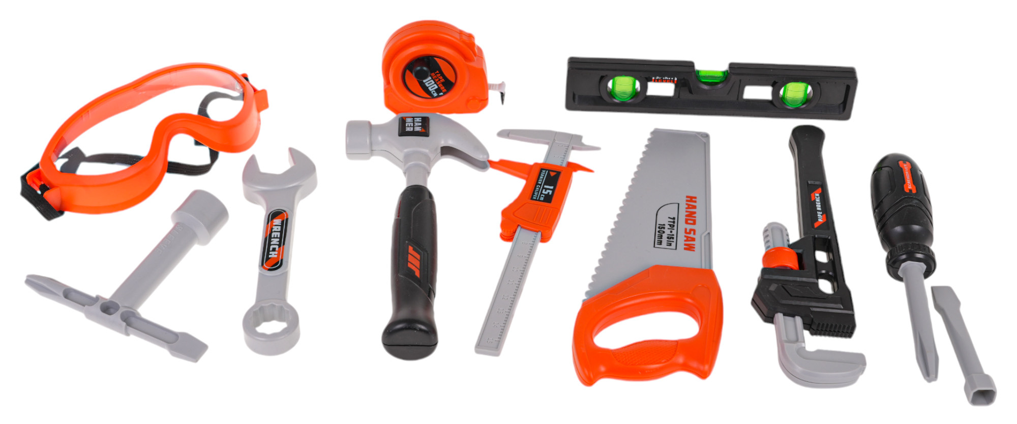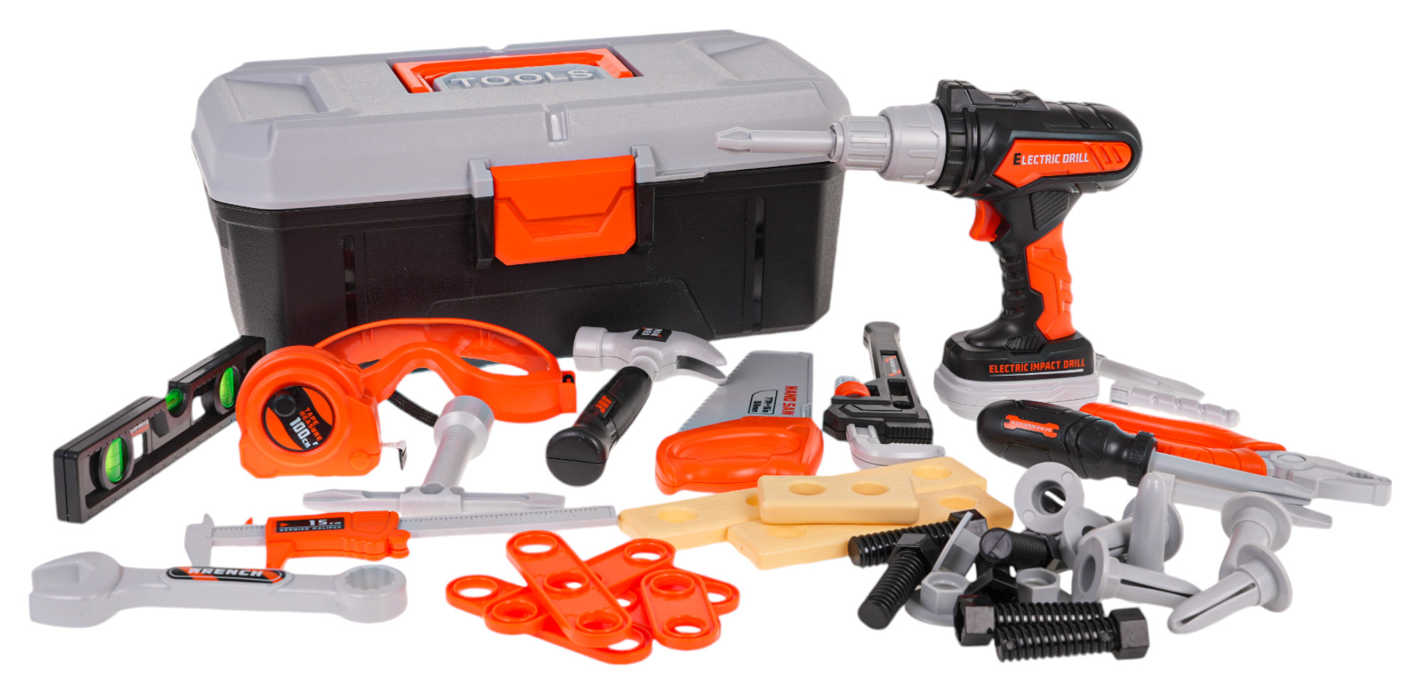 Veškeré nářadí, jako je kladivo , pila , posuvné měřítko a klíč , je vyrobeno z vysoce kvalitního plastu, což zajišťuje odolnost a bezpečnost během hry. Vrtačka/šroubovák je napájen 2 bateriemi AA , které nejsou součástí balení. Zapnutím vrtačky se aktivuje skutečné šroubování a odšroubování , což přispívá k realističtějšímu zážitku ze hry.