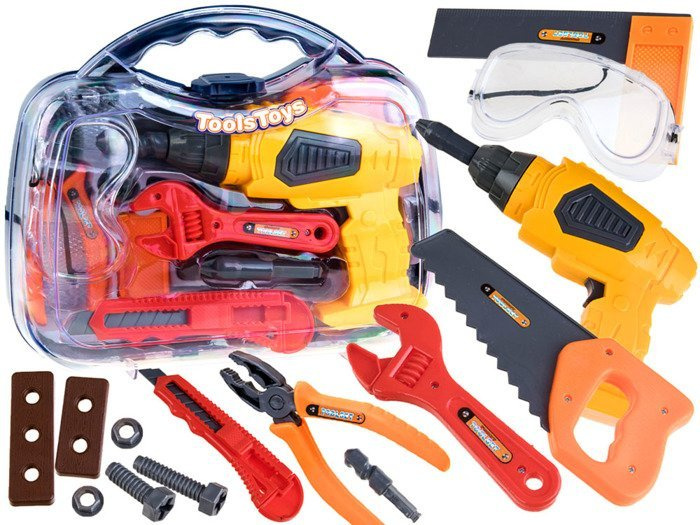 Tato nádherná sada obsahuje skvěle zpracované a propracované nástroje vyrobené výhradně z plastu. Díky kufříku, ve kterém je nářadí zabaleno, bude po skončení práce vždy uloženo. Tyto nástroje by měl mít každý malý kutil, aby se mohl stát pomocníkem tatínka nebo dědečka a v případě poruchy rychle odstranit závadu. Sada poskytne nejednomu malému pomocníkovi neuvěřitelné množství zábavy při hře na kutily.