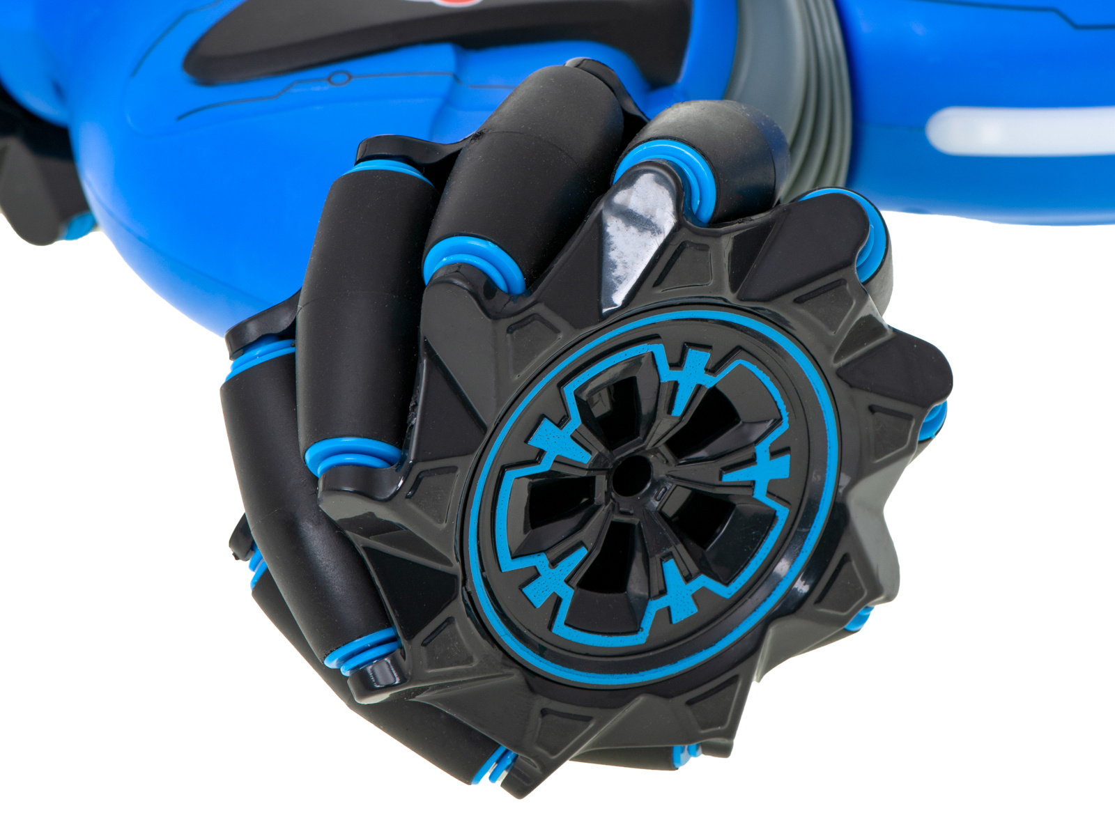Neobvyklá konstrukce kol umožňuje hračce jezdit do stran, aniž by se otáčela. Gumové klouby umožňují šplhání.