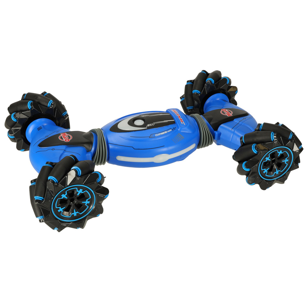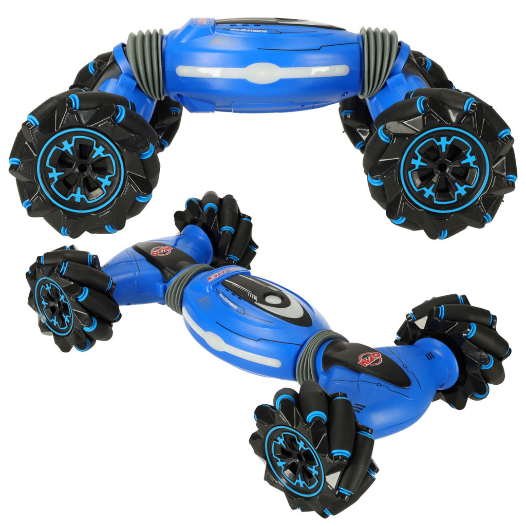Fantastické RC kaskadérské kousky Tančící auto na dálkové ovládání. Provádí akrobacii, mění tvar, jezdí bokem a překonává obtížné povrchy. Má světelné a zvukové efekty. Tři možnosti ovládání. Doba jízdy: až 20 minut. Rozměry: 38x22x9 cm.Celý popis