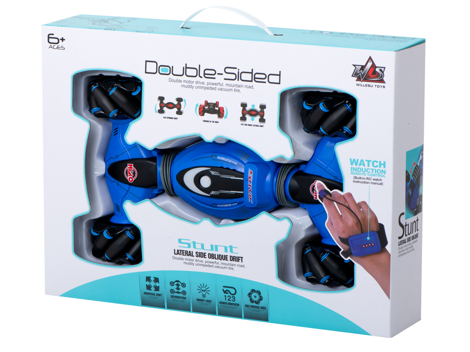 Nenápadné "hodinky" na dálkové ovládání jsou mimořádně zábavné! Vysoce citlivý dálkový ovladač, který se nosí na ruce, umožňuje ovládat vůz gesty. Umožňuje nejen řídit vůz, ale také měnit hudbu nebo tvar vozu. Ovládání gesty je zábavné a vzbuzuje respekt!