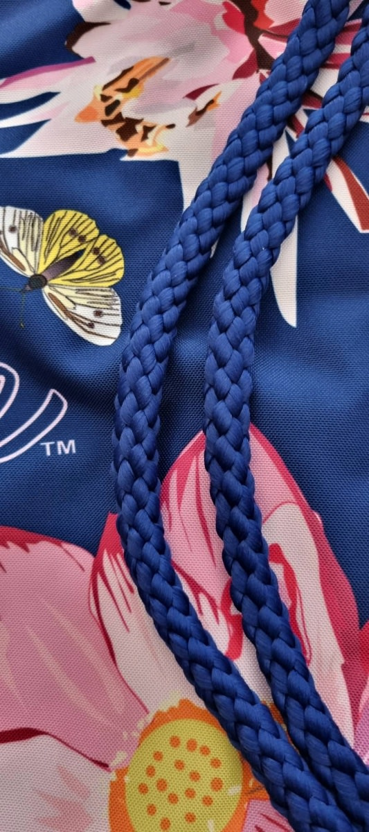 Tlusté, spletené stahovací šňůrky umožňují nošení tašky na zádech nebo přes rameno.