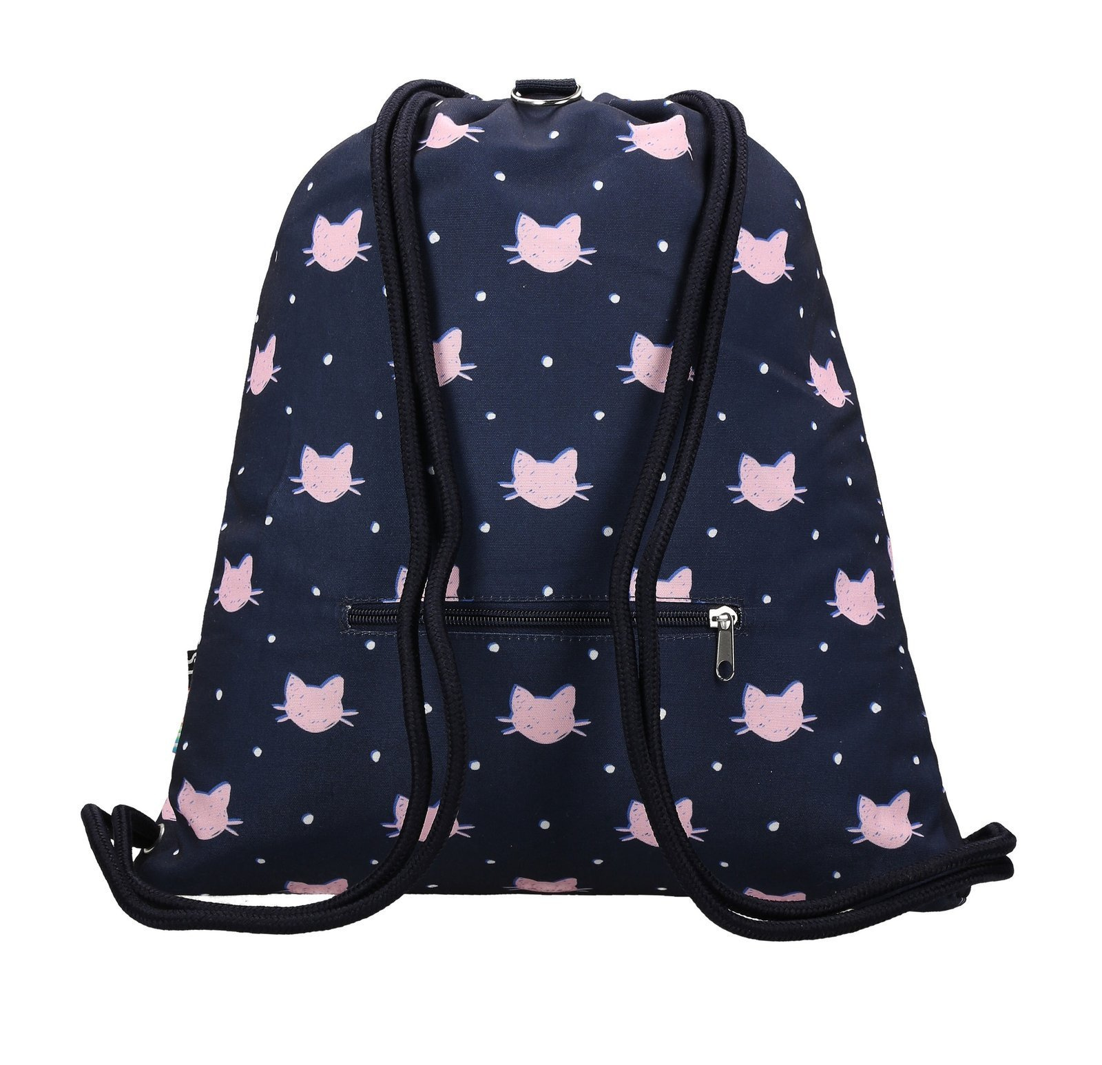 Tlusté, spletené stahovací šňůrky umožňují nošení tašky na zádech nebo přes rameno.
