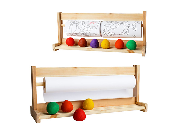 Stojan na role o délce 48 cm je vyroben ze dřeva a umožňuje umístit dvě tematické omalovánky tak, aby se daly snadno rozbalit. S tímto řešením není obtížné udržovat pořádek. Stojan pomáhá zajistit, aby role omalovánek nebyla náchylná k poškození (pomačkání, roztržení, zaplavení). Stojan je vybaven funkční poličkou na pastelky a nastavitelnou příčkou, takže zajímavý motiv lze snadno odtrhnout bez zubatých hran. Stojan je skvělou dekorací na stůl! Velký stojan umožňuje také montáž čistého kreslicího papíru o šířce 43-44 cm, takže funguje jako velký list.