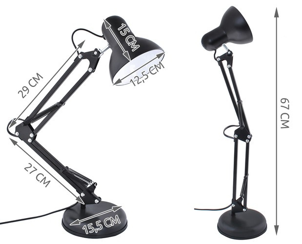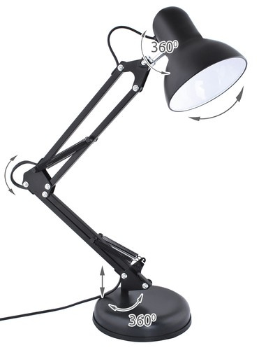 Klasická kreslicí lampa poskytuje mnoho možností nastavení úhlu světla. Stínidlo je otočné o 360 stupňů, výška je nastavitelná díky ramenům s pružinami. Rameno je otočné o 360 stupňů, díky čemuž si svítilnu dokonale přizpůsobíte svým potřebám. Skvěle se bude hodit na práci u stolu, domácí úkoly, kutilství, lepení modelů nebo kreslení. Kovový rám, těžká základna pro stabilitu.