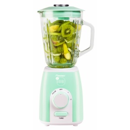 Vysoce kvalitní plastové pouzdro Vyjímatelná nádoba z borosilikátového skla, lze mýt v myčce Kapacita 1,5 l. Odnímatelné víko s plnícím otvorem 4 možnosti regulace rychlosti spínače (Pulse - 0 - 1 - 2) Turbo spínač 4. Vysoce odolné čepele z nerezové oceli pro drcení ledu. Snadno se čistí, praktický navíjecí kabel. Protiskluzové nožičky.