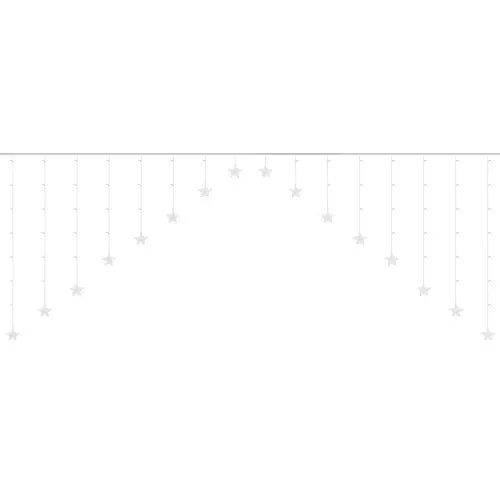 SPECIFIKACE - počet režimů: 8; typ osvětlení; VEDENÝ; barva světla: vícebarevná; barva vedení: transparentní; počet LED: 136; třída vodotěsnosti: IP44; dálkové ovládání: ano; napájení: elektrická síť; výkon: 1,2W; rozměr jedné hvězdy: 9 cm; celková délka: 535 cm; délka rampouchu: 100 cm; hmotnost: 0,388 kg; hmotnost v balení: 0,494 kg.