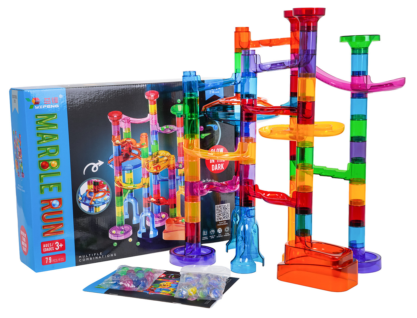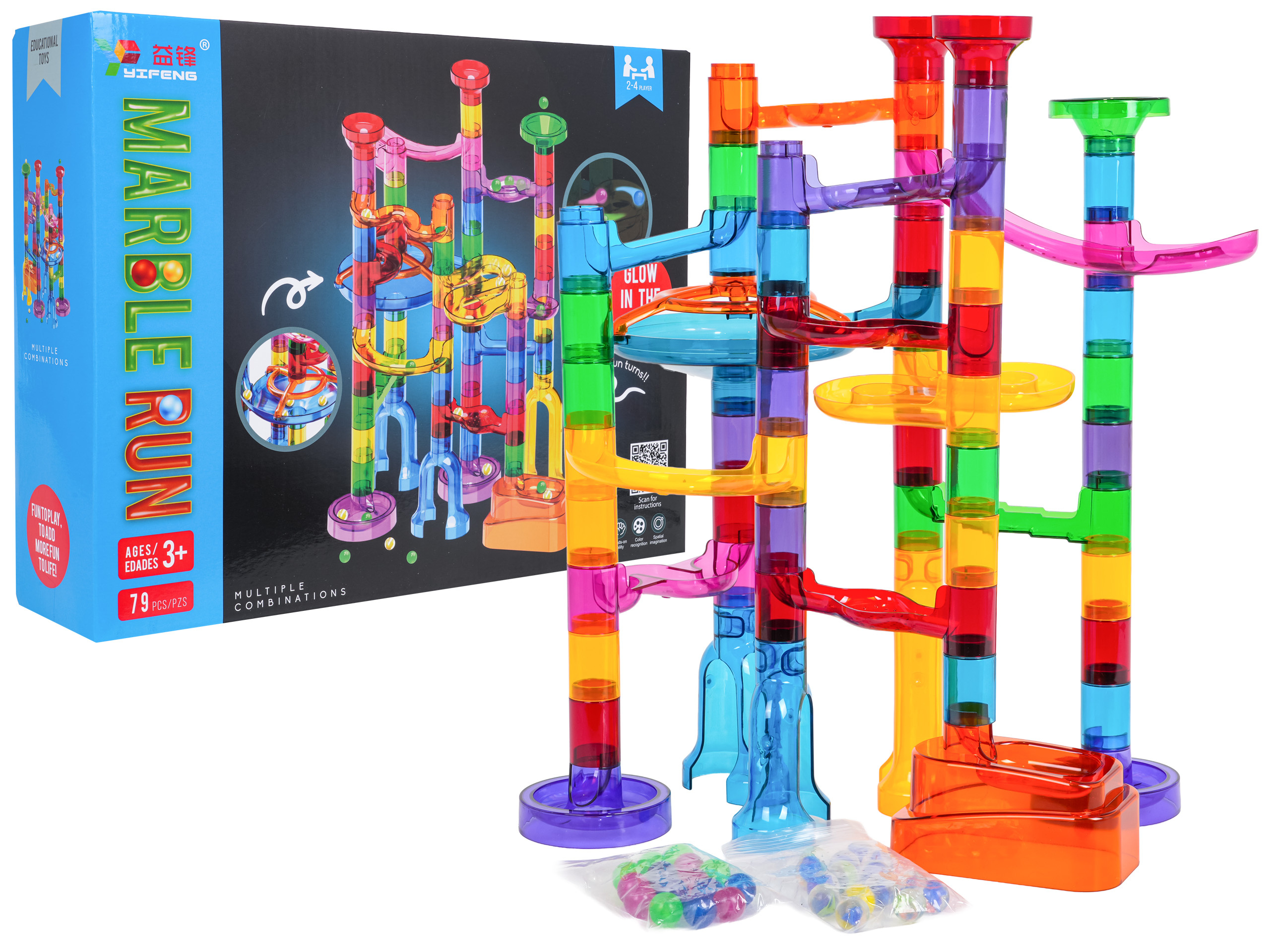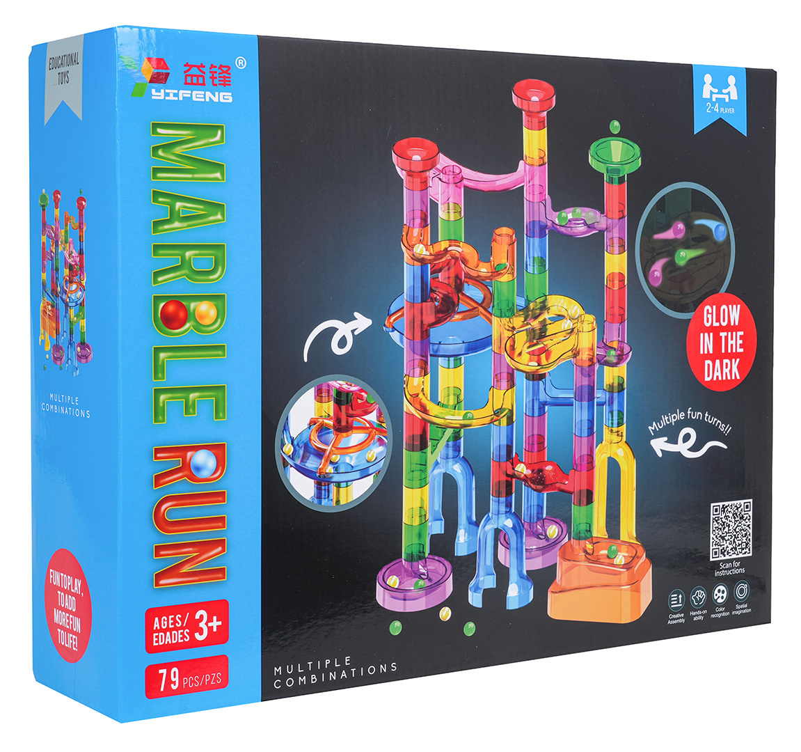 Barevná, odolná dráha k vlastní montáži se svítícími kuličkami ve tmě pro děti od tří let. Zábava spočívá ve vlastnoručním postavení konstrukce dráhy a následném pouštění míčků tunely. Pouštění kuliček do pohybu a pozorování, jak překonávají klikaté tunely, přináší spoustu radosti, uklidňuje a ztišuje. Hračka pozitivně ovlivňuje rozvoj kreativity, představivosti a manuálních dovedností.