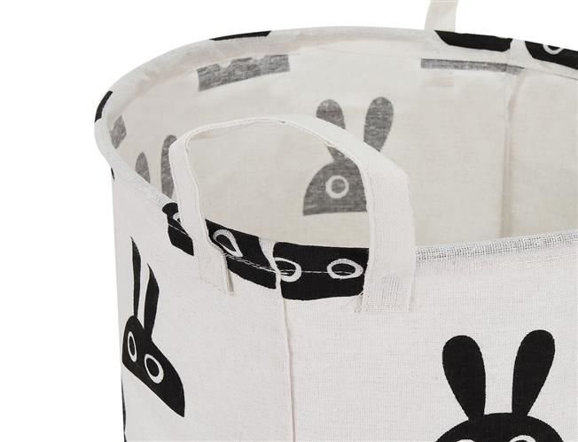 Taška je skvělý organizér na hračky, knihy, prádlo a mnoho dalších produktů. Díky svému klasickému a modernímu stylu v černé a bílé barvě se taška hodí do každého interiéru. Uvnitř je potažena nepromokavým materiálem , což znamená, že do ní můžeme uložit mokré oblečení bez rizika zašpinění vnější strany materiálu.